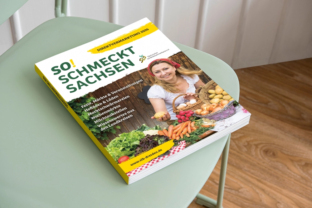 Auch 2026 durften wir den Direktvermarktungskatalog „So! schmeckt Sachsen“ gemeinsam mit dem Sächsischer Landesbauernverband e. V. weiterentwickeln – und damit ein Herzensprojekt in die nächste Runde führen.